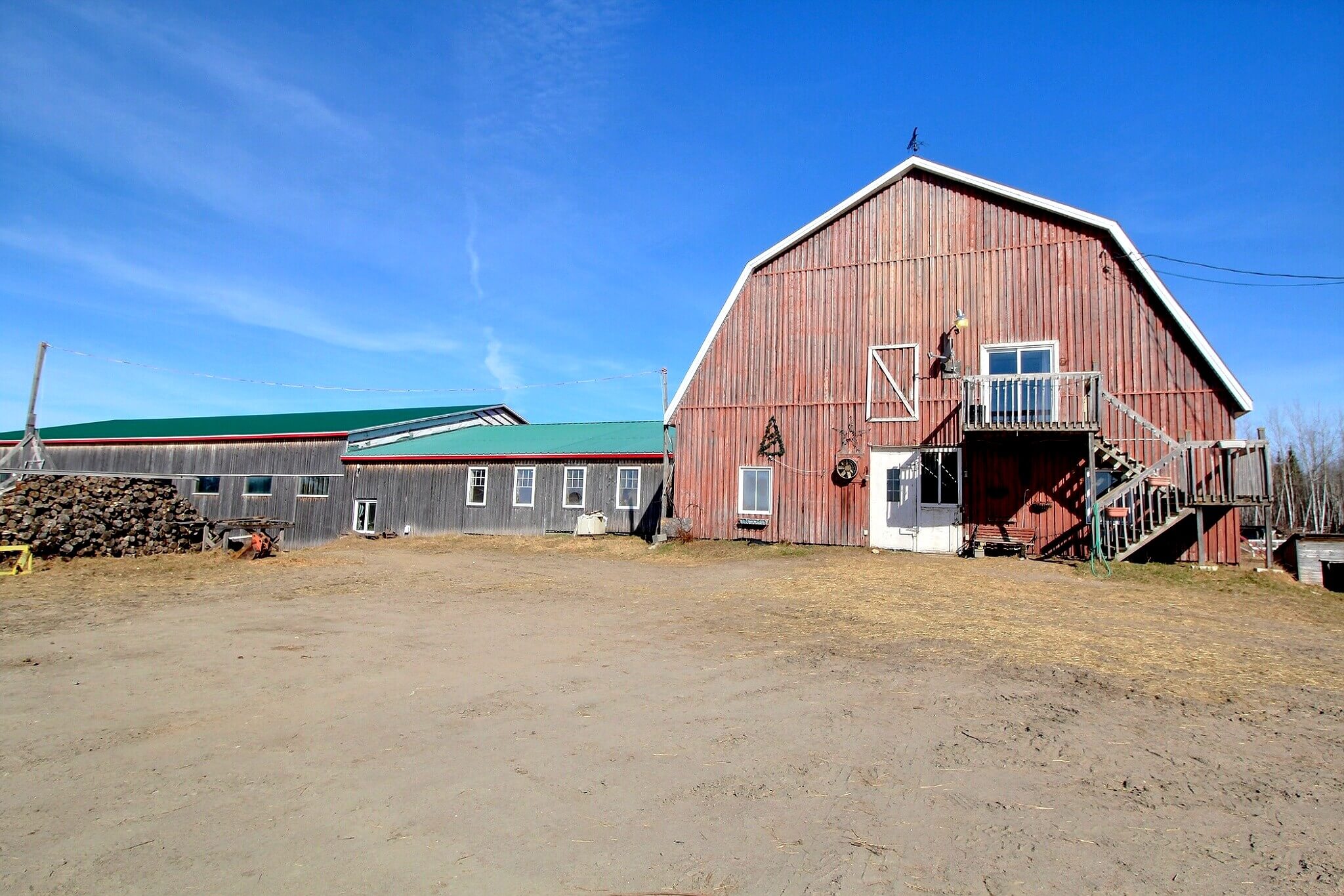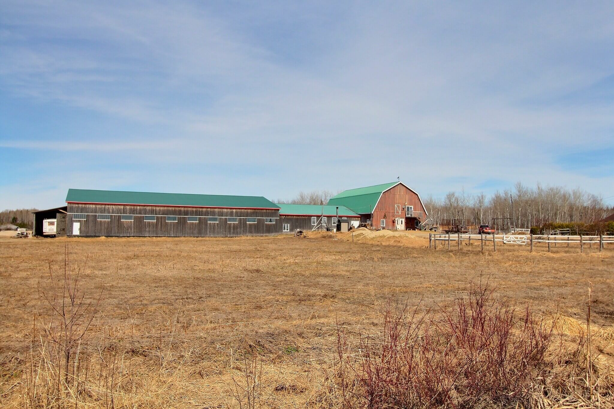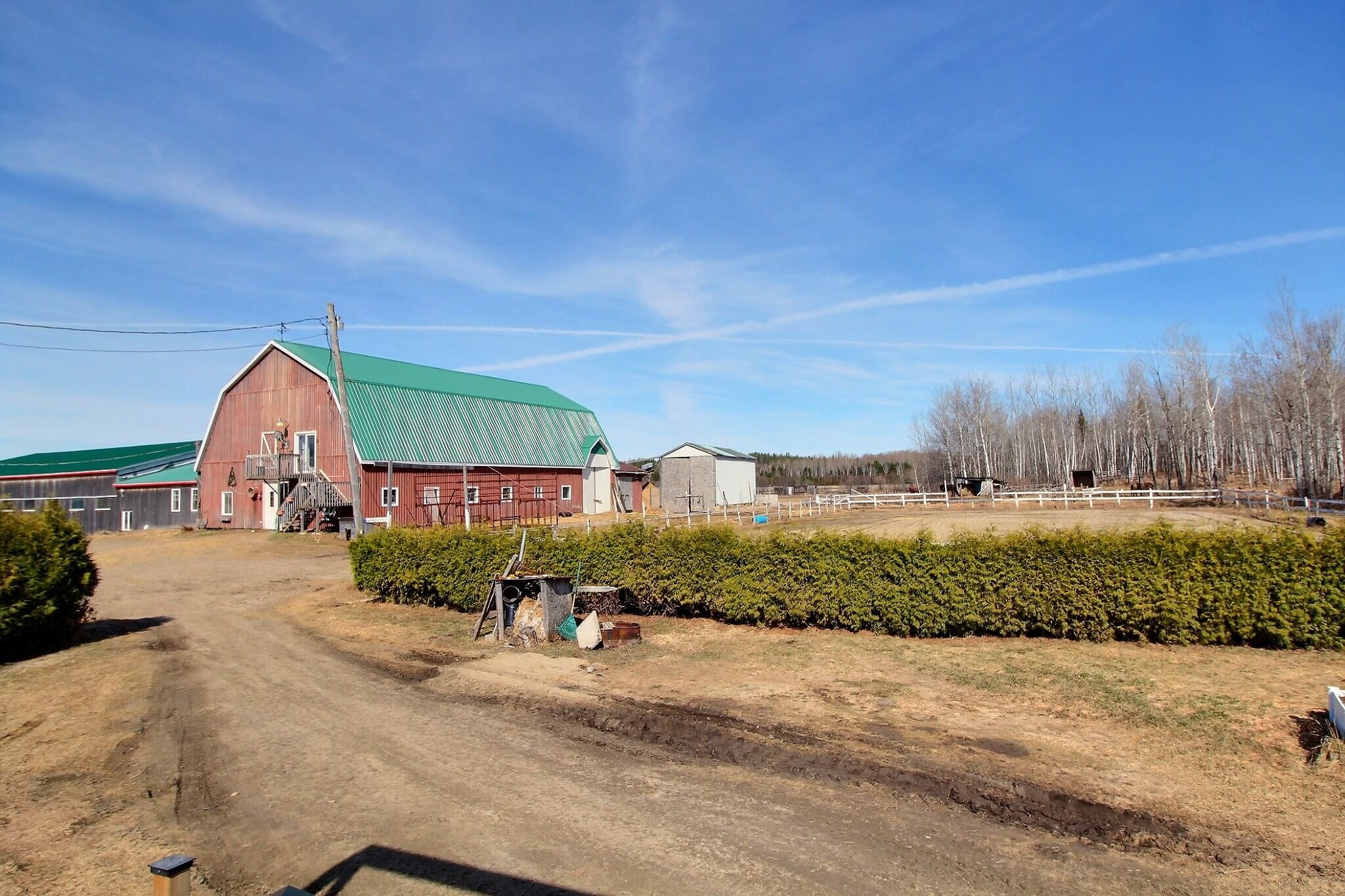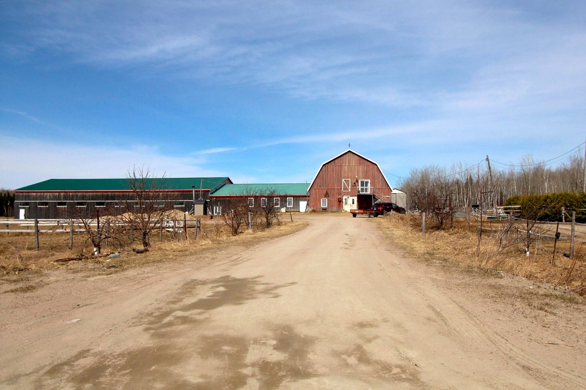 À vendre: ferme à Albanel, une municipalité du Lac-St-Jean. Ce domaine de 99,9 acres (40,4 ha) est situé au cœur d'une nature généreuse où vous trouverez tout ce qu'il faut pour vivre de votre passion des animaux. Les possibilités d'élevage sont multiples: chevaux, alpagas, moutons, chèvres, boeufs, etc. Sur place, une résidence confortable deux chambres à coucher/1 salle de bain, 1 garage double, des remises et un bâtiment d'élevage en trois partie avec plusieurs commodités dont un bureau de travail, un espace loft, une salle de bain, une douche avec eau chaude pour animaux et plus encore!