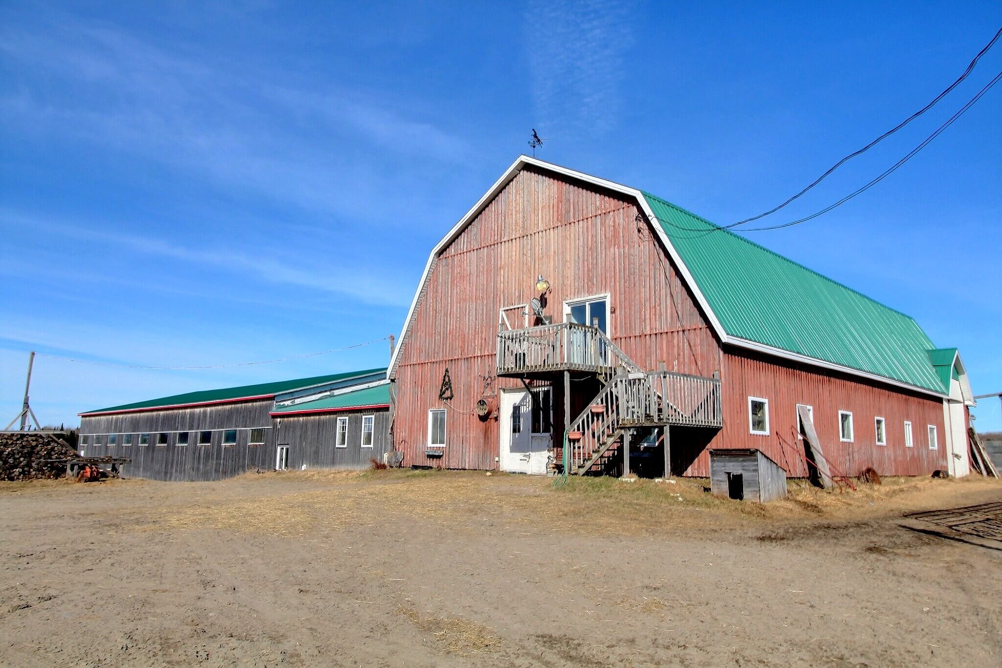 - partie 1, bâtiment (2007) avec 17 box 10’ x 10’, écureur convoyeur extérieur modifié avec lumières led en 2022;