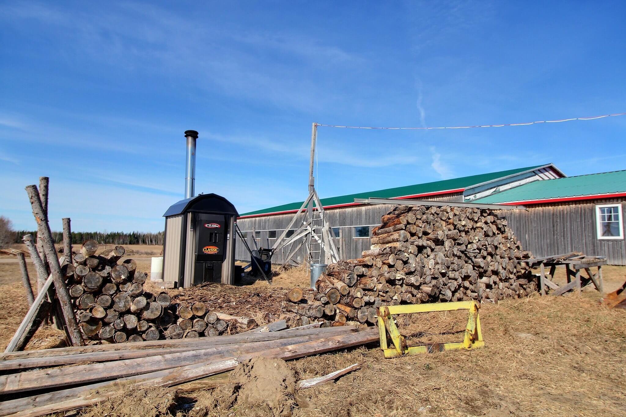- Le tout est chauffé avec un système de chauffage au bois extérieur fonctionnant avec du glycol (48 000).