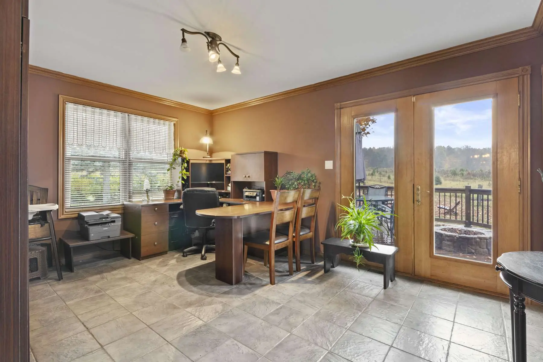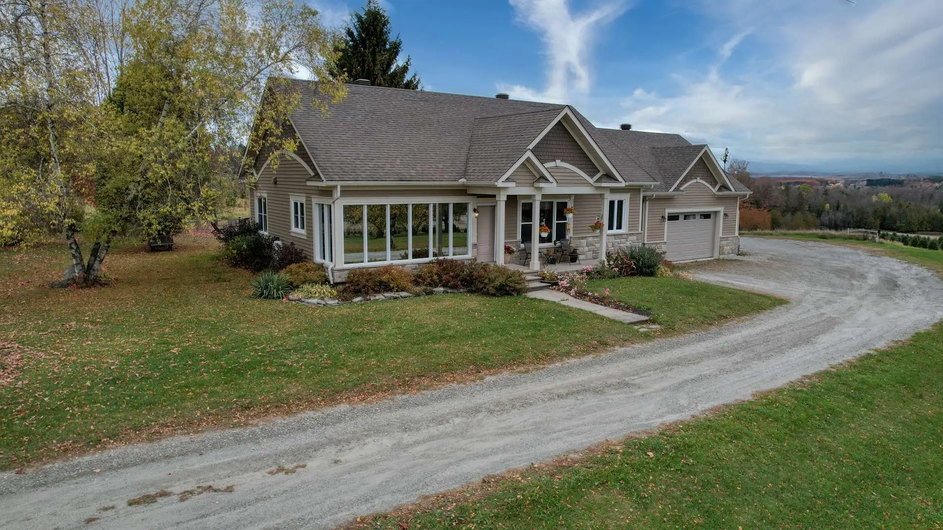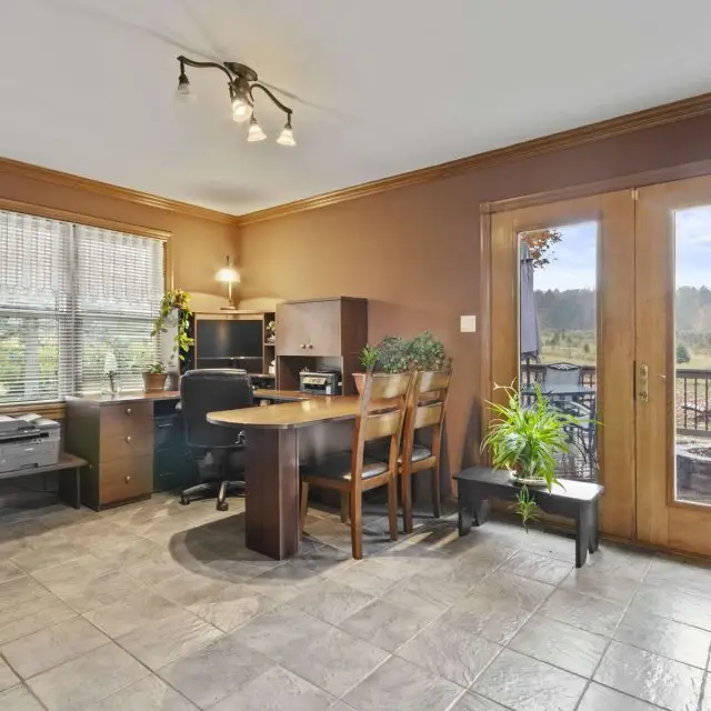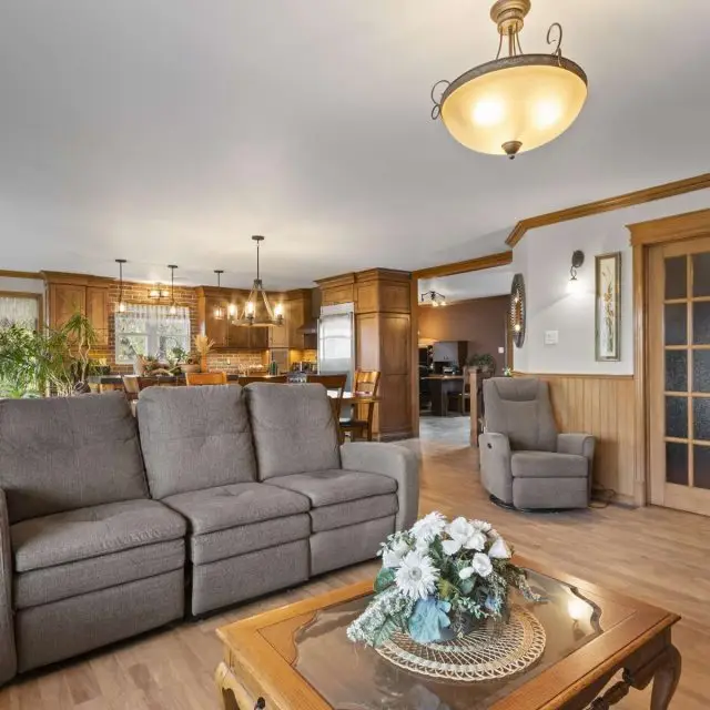 De type bungalow, la maison se distingue par sa luminosité remarquable grâce à une fenestration abondante. Entièrement rénovée avec soin au fil des ans, avec des matériaux de qualité, elle comprend une aire de vie conviviale et chaleureuse, cuisine fonctionnelle avec ilot, bureau, cinq chambres (1 + 4), deux salles de bain. Un espace parfait pour la famille ou pour combiner vie à la campagne et projets agricoles. Son système de chauffage par géothermie assure confort et efficacité énergétique tout au long de l’année.