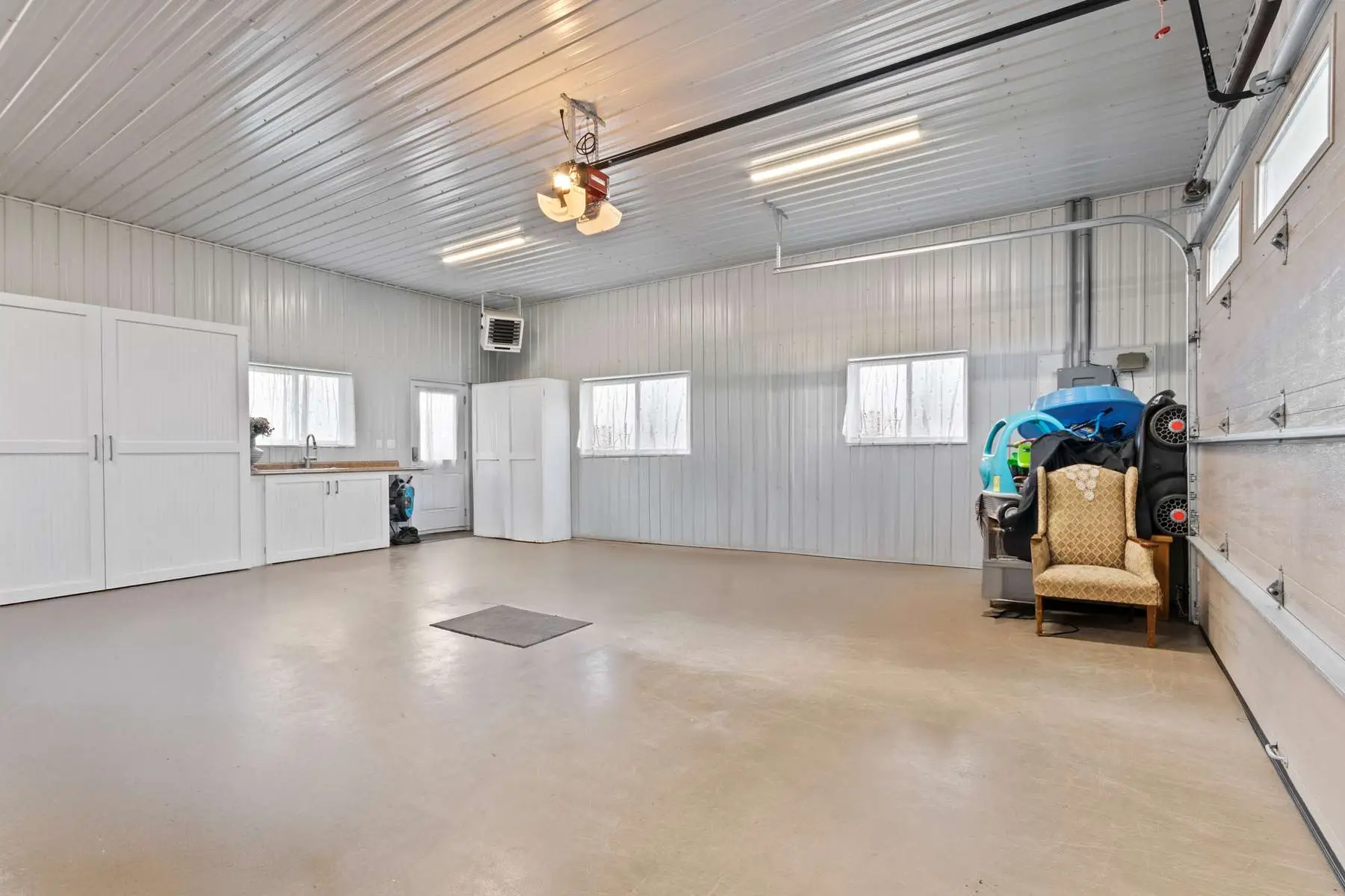 Attenant à la résidence, un garage double chauffé complète les espaces de vie. Un second garage, doté d’une partie chauffée et d’une autre pour le remisage, permet le rangement d’équipements, de machineries agricoles ou de matériel de production.