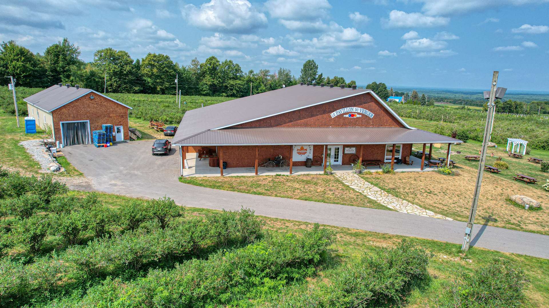 - Potentiel de revenus diversifié : événements, restauration (PERMIS CPTAQ), cabane à sucre, verger, bleuetière et production d’érable, transformation en plusieurs produits.